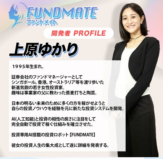 まとめると、上原ゆかり氏は「ファンドメイド(FUNDMATE)」の顔として広告上には登場していますが、その素性や投資の専門家としての信頼性を裏付ける要素は皆無です。