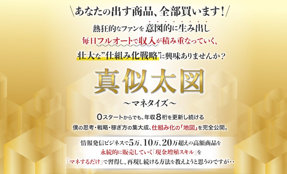 僕のイチオシは「真似太図」。もちろん努力は必要ですが、ネットの中で仕組みを作り商品が自動で売れていくようになります。