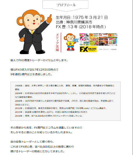 イサム氏は、ランディングページ上で「9年連続でFX年収が1億円以上」と紹介されています。また、「各メディアに引っ張りだこ」と書かれており、FX業界での著名な人物であるように見せています。