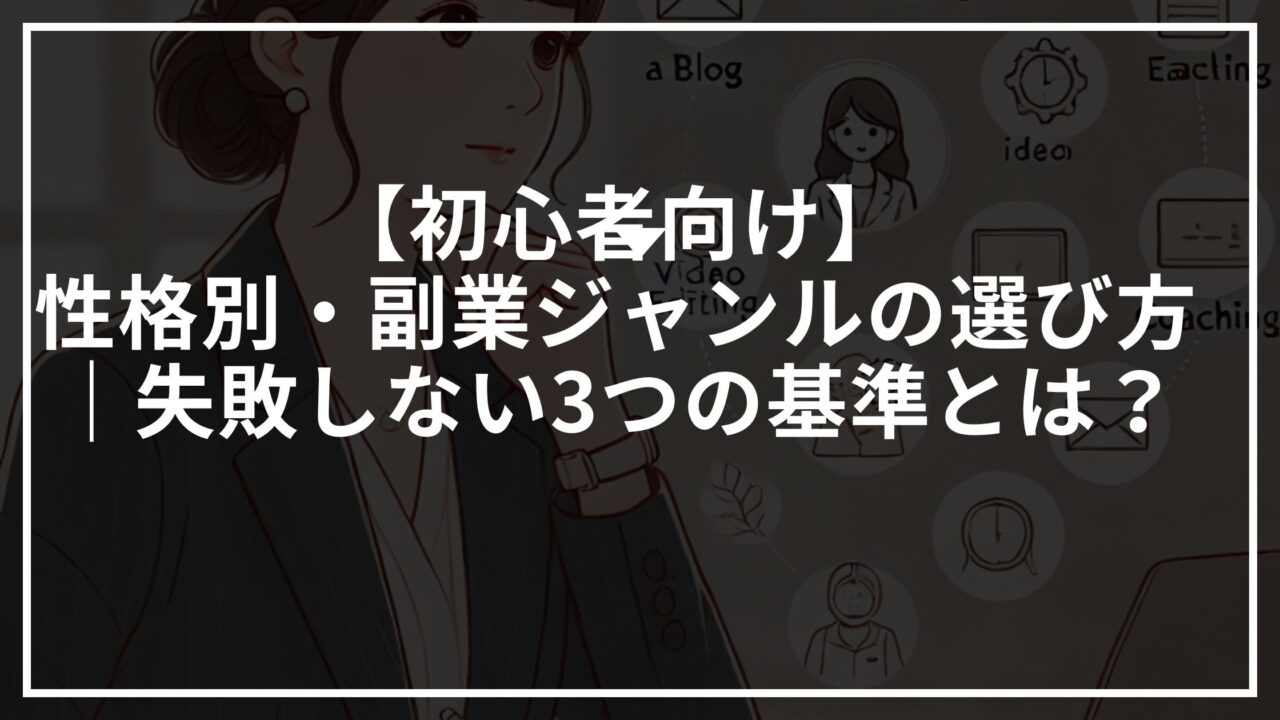 僕自身も、過去にそうした“痛い失敗”を経験しました。だからこそ、この記事ではあなたに合った副業ジャンルの選び方を、性格・ライフスタイル別の視点から具体的にご紹介します。